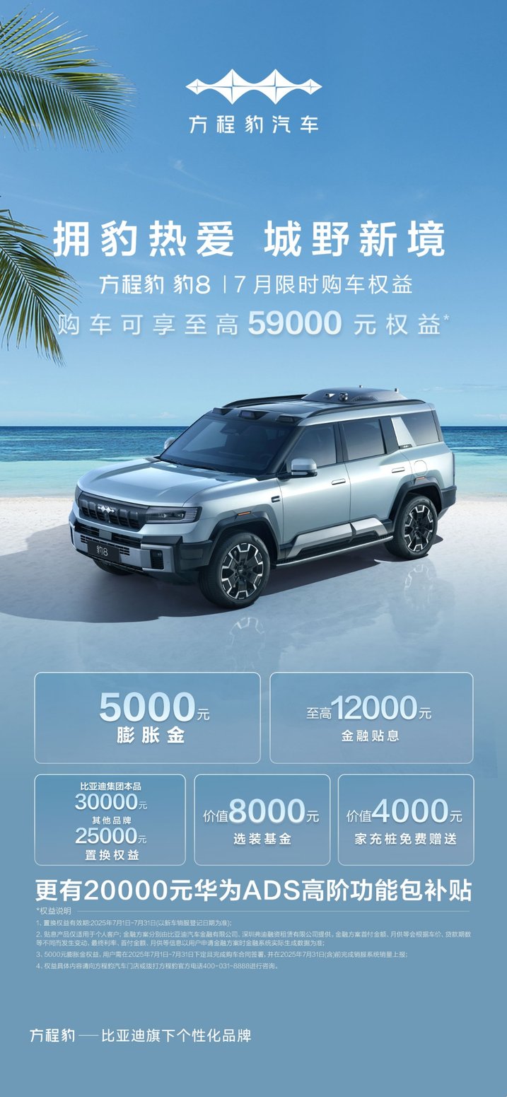 7月限时购车权益购车车可享至高59000元权益;