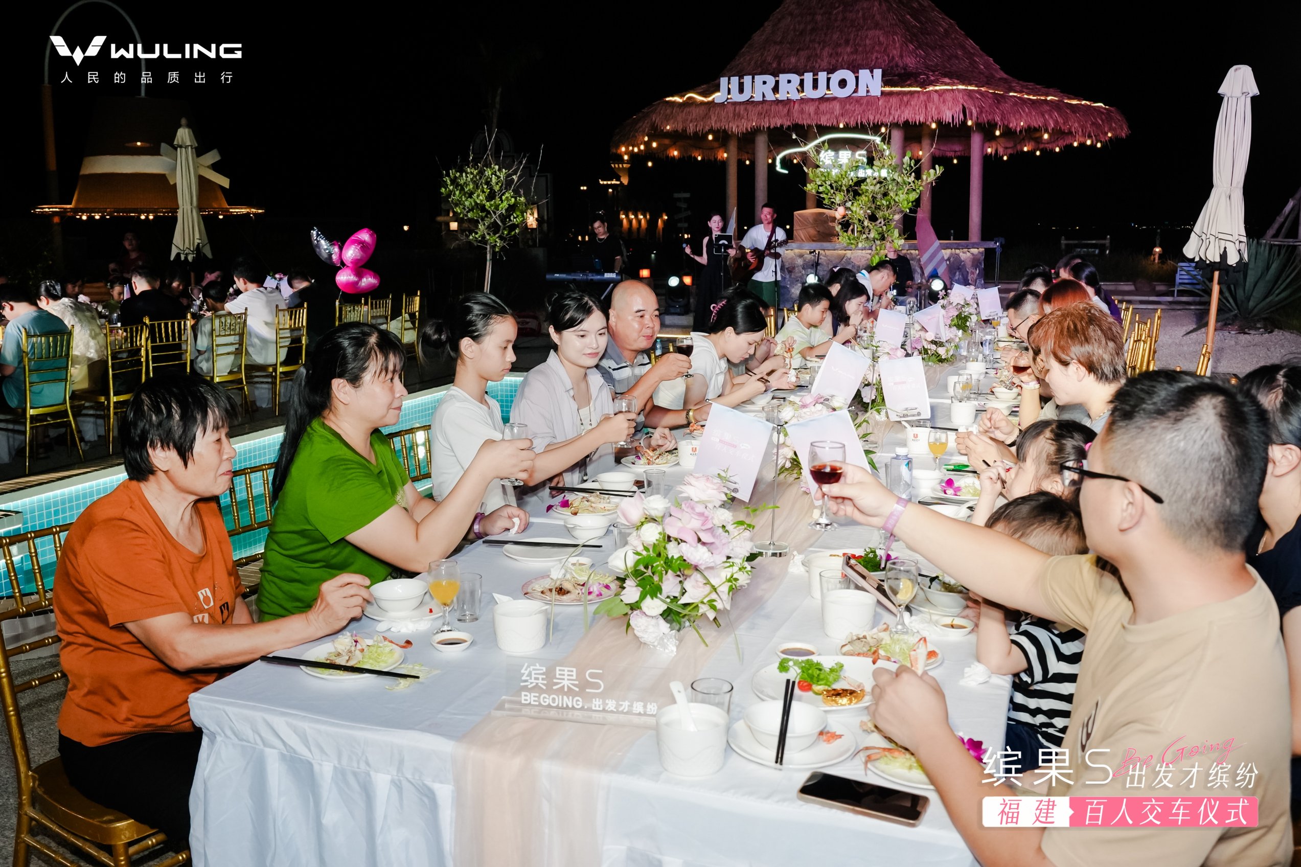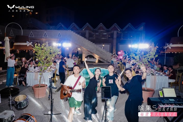 交车仪式结束后,活动并未落幕。随着夜幕降临,现场开始了微醺音乐派对,车主与嘉宾们共饮美酒、享受美食晚宴。夜色、海声与欢笑交织成最动人的交响,五菱用一场派对,将交车仪式转变为朋友间的聚会,让品牌与用户的情感连接更加自然紧密。这场融合了多重体验的盛会,让每一位参与者都能在轻松愉悦的氛围中,深入了解缤果S,感受五菱汽车的品牌温度。