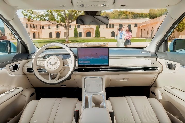 密友聚会:车内配备50W无线快充模块,前排设置双人奶茶杯筒,通过深浅分区设计避免放置冲突。
