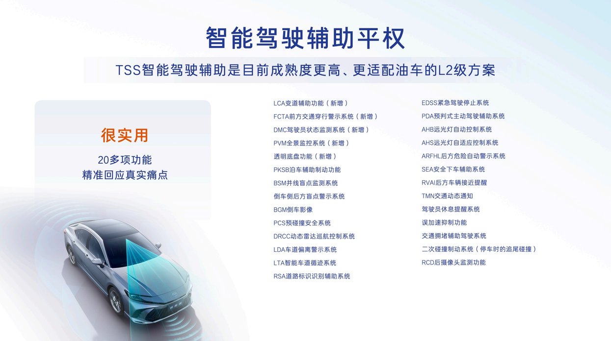 聚焦用户真实需求,将有限的成本用在刀刃上,实现"入门价值最大化"的同时,还保持了极具竞争力的价格体系,让高端配置不再只是顶配车型的专属。这是广汽丰田一次极其务实的产品焕新,当新势力还在为月销发愁时,全球大厂显然已经用规模优势实现了普惠平权。