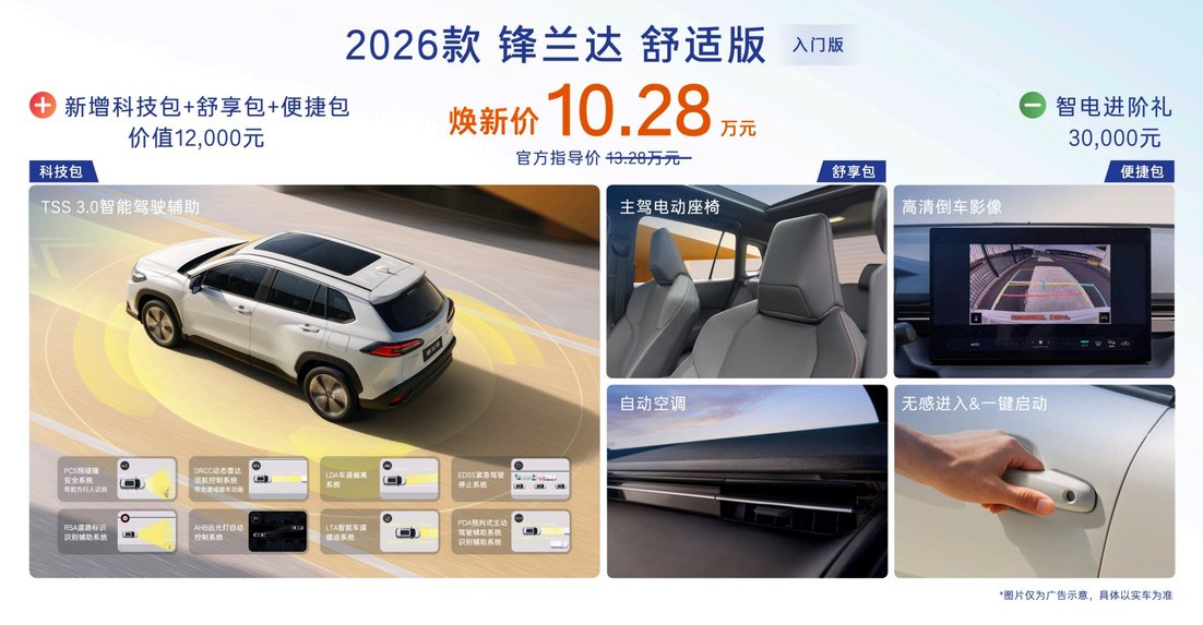 如果说这次产品升级用什么关键词最能概括,那一定是“入门价值大幅提升”。四款2026款全球车在智能化、高价值感等方面全面进阶,且多数升级均为“全系标配”。广汽丰田没有在顶配车型上堆砌“炫技型配置”,而是选择把用户最常用、最有感知、最需要的功能下放至入门版,直接提升入门版的高价值。