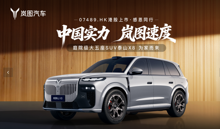 鸣锣上市的同时,“港股上市第一车”岚图泰山X8正式亮相。作为岚图赴港上市的首发战略车型,岚图泰山X8是“中国最大五座SUV”,以顶天立地的大气姿态,融合优雅从容的中式美学,开创“庭院级大五座 SUV”全新品类。车内坐拥6.1平米奢阔座舱空间,可同时容纳11个行李箱外加48处储物空间,带来同级领先的装载能力,全面满足中国家庭出行的核心需求。