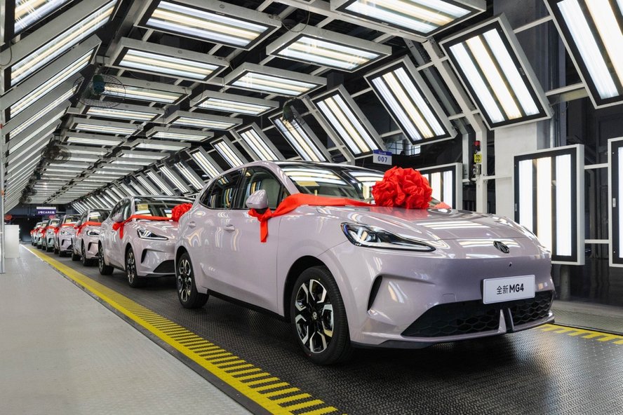 7月14日,上汽南京生产基地整装车间,东来紫色的全新MG4完成最后的质检工序后驶出生产线,意味着MG品牌新百年新能源战略的首款车型正式量产下线。作为MG全面发力新能源领域的重磅车型,全新MG4率先搭载MG×OPPO智行车机互联系统,并融合了跑车同款的外观设计、低趴宽体的灵动造型,以及东来紫、清波翠等多款潮流车色,将为消费者带来两厢纯电的全新选择。新车将于8月正式发布。