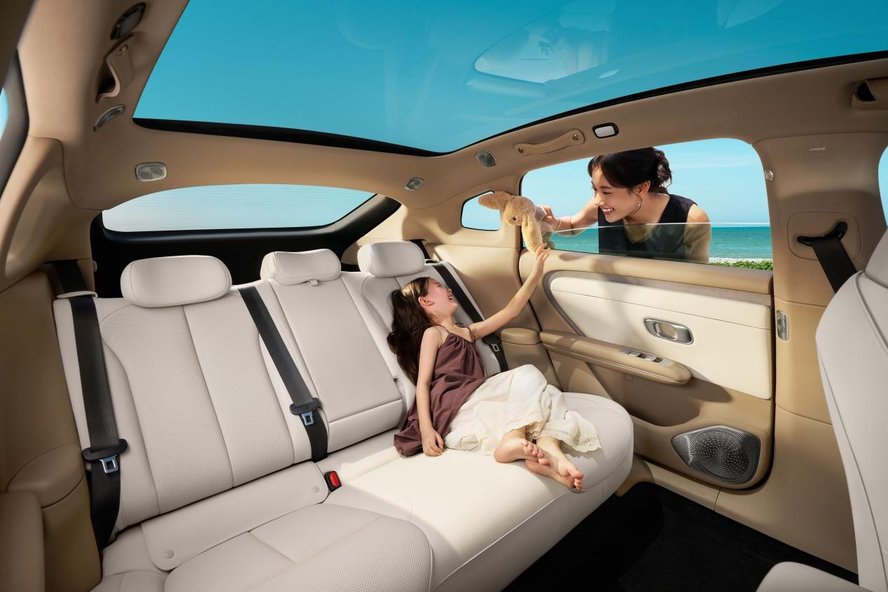 在乘坐空间上,A06乘员舱X方向长度为2630mm比迈巴赫多90mm;在后排有效头部空间以及走廊宽度上,A06同样比迈巴赫也要大,小朋友可以轻松穿行。除了空间大,长安启源A06在空间收纳细节上也做到了极致,全车精心设计了B柱隐藏式挂钩、专属雨伞槽、眼镜盒等38处魔术收纳空间,处处显巧思,处处有惊喜。