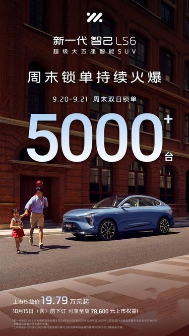 新一代智己LS6共推出9大版本,上市权益价19.79万元~26.99万元。自发布以来,市场反响热烈:上市当晚,仅27分钟大定突破10,000台;9月20日~21日周末双日锁单破5,000台;门店试驾持续爆满,热度不减,“20万级最强爆品”态势尽显。