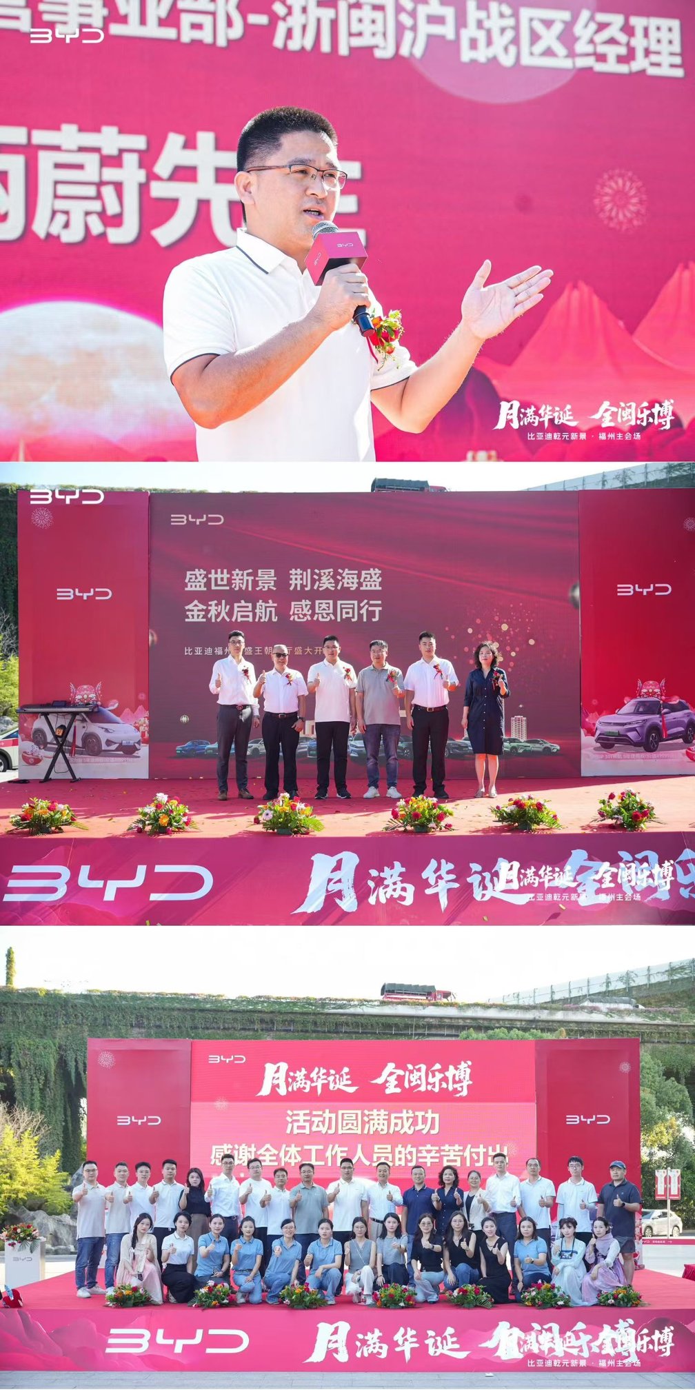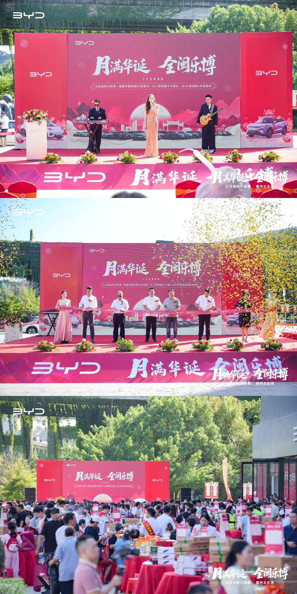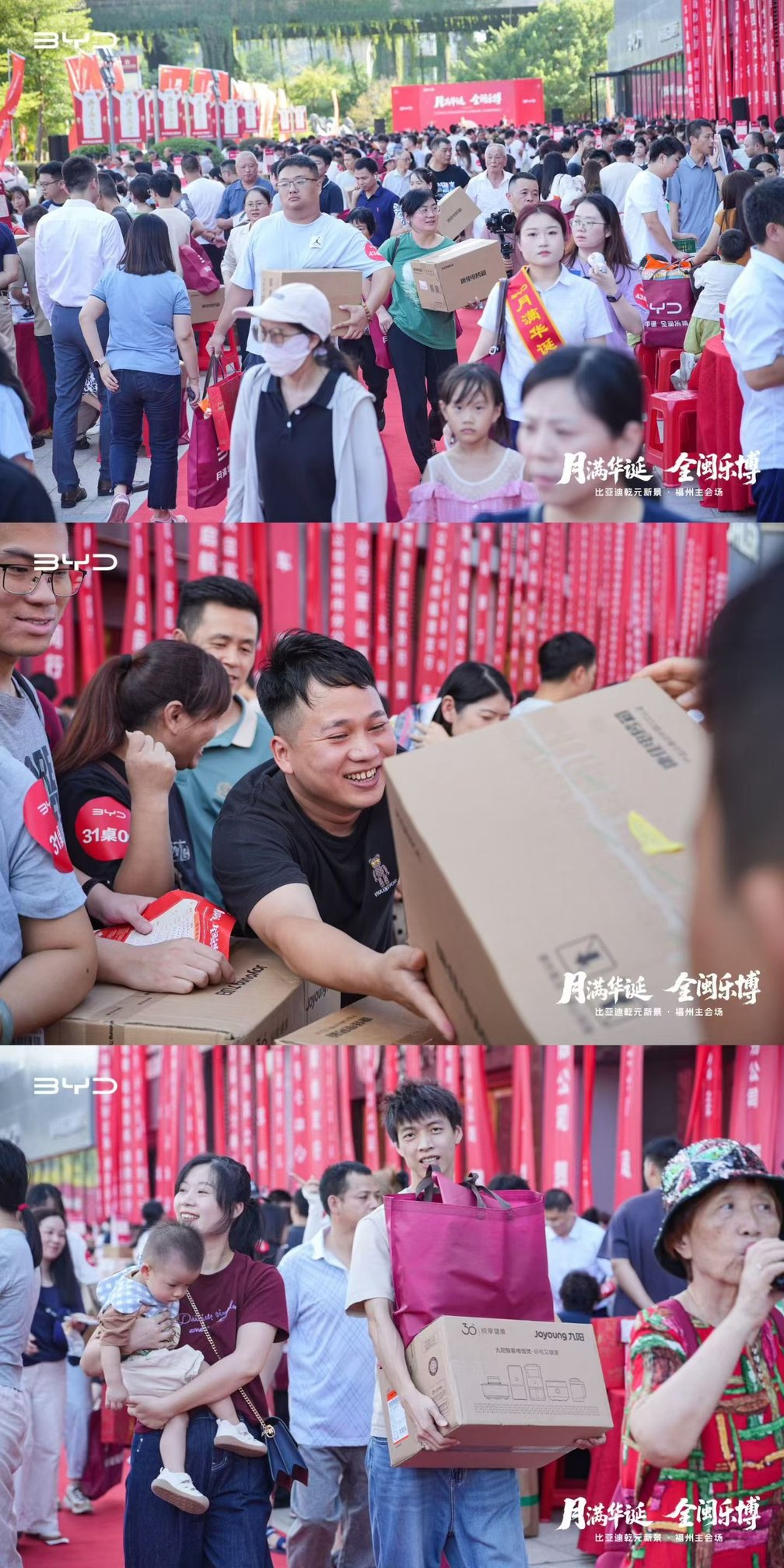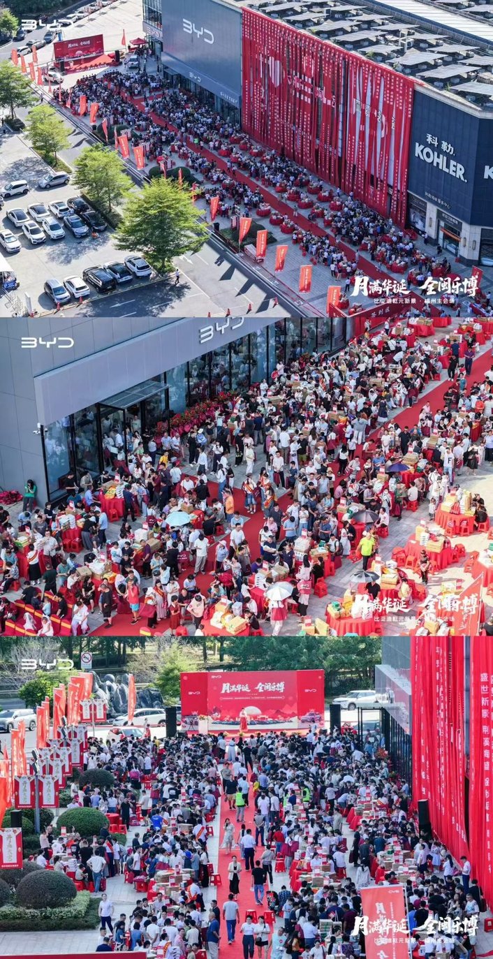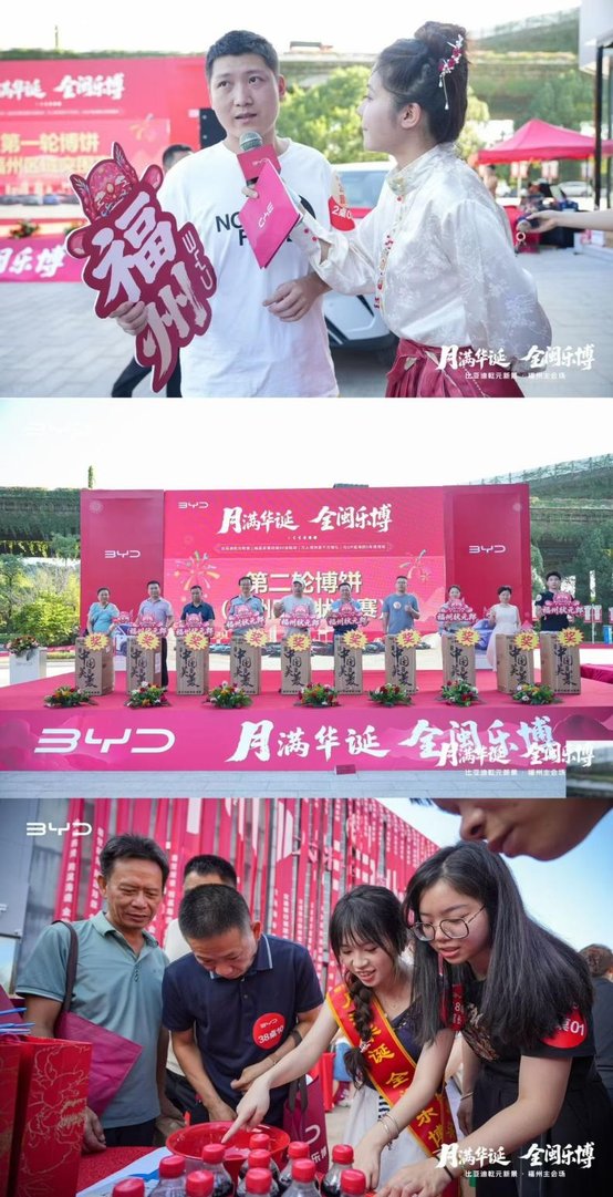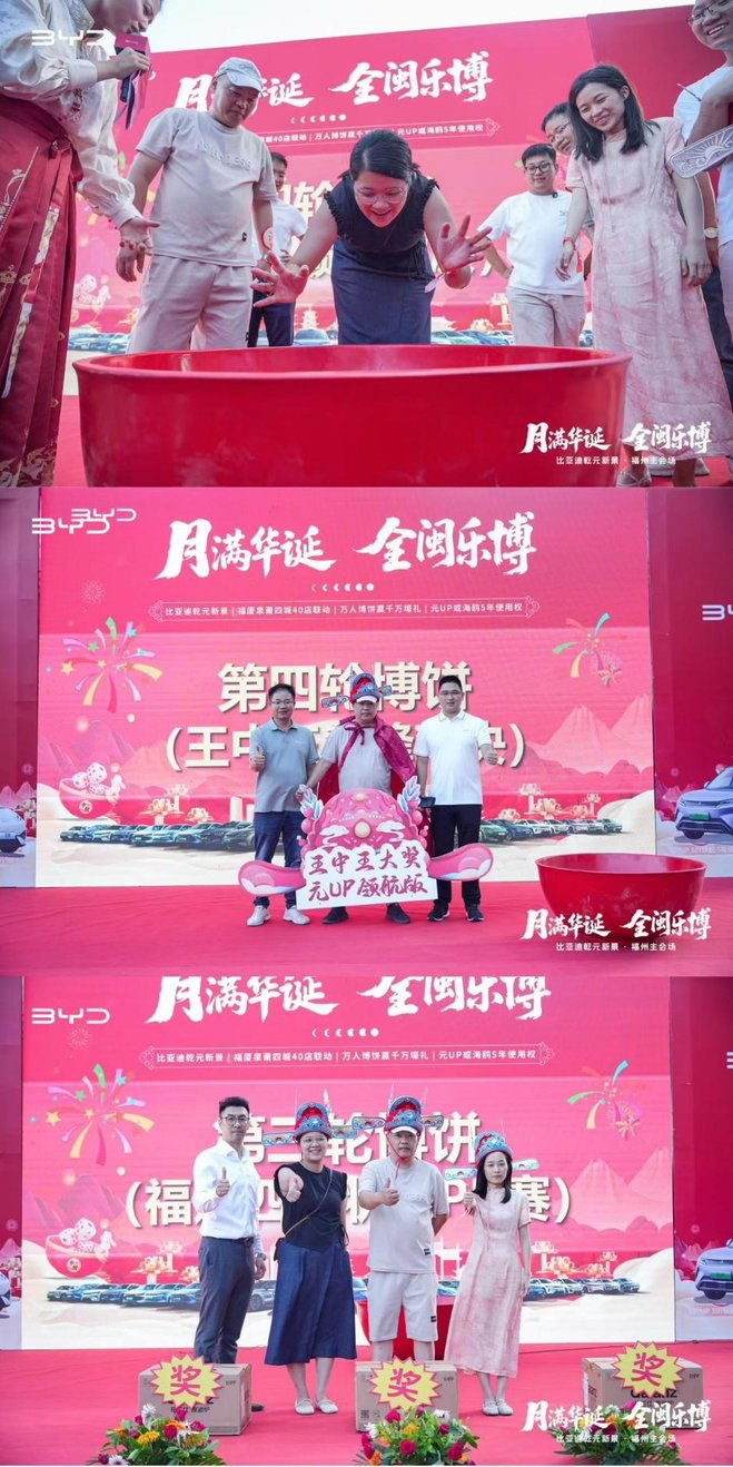 金秋十月,风清气爽,福满榕城。10月18日,比亚迪福州海盛王朝展厅开业盛典与“月满华诞・全闽乐博——福厦泉莆四城联动博饼活动”在一片欢腾中圆满落下帷幕。万余位来宾、比亚迪新老车主及媒体朋友齐聚现场,共同见证了展厅启新的重要时刻,也在充满闽南特色的博饼狂欢中,共享了一场融合品牌温度与地域文化的盛宴。
