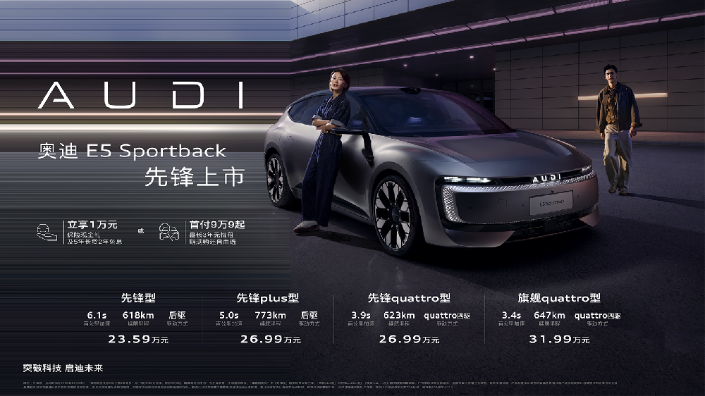 奥迪 E5 Sportback上市23.59万起 并享万元保险现金权益